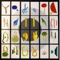 oprawione pod szkłem. Jest to cykl obrazów abstrakcyjnych, improwizacja na temat szkicu przedstawiającego kwiaty, zawartego w centralnym obrazie "Zielnik" (wym. 90 cm x 90 cm, 2021-2025).